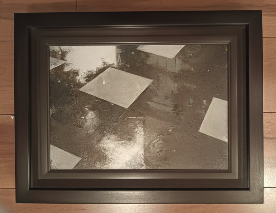 このブログのアイキャッチにしているのが、その絵画です。(なお、今回もオフィスKのセンスの無い撮影の為、光の映り込みをGeminiに取り去って貰い、額が斜めになっていたのを真っ直ぐにして貰いました…)